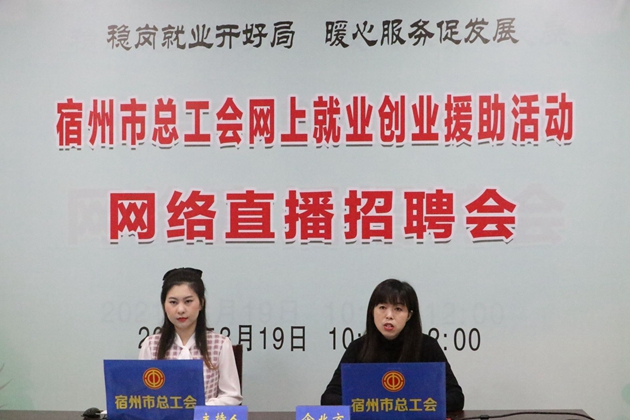 暖心服务促发展”为主题的网上就业创业援助活动。截至3月19日,宿州市工会归集参加招聘的企业429余家,就业岗位31933个,初步达成就业意向11585余人,其中农民工初步达成就业意向达2585人,帮助了困难职工、农民工等群体找工作,取得显著成效。(黄元明)