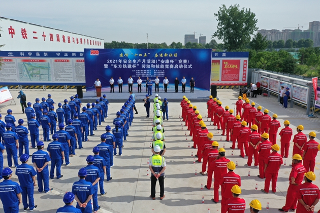 6月8日,2021年安全生产月活动(“安康杯”竞赛)暨“东方铁建杯”劳动和技能竞赛启动仪式在宿州市站前广场改造及绿化综合提升项目现场召开,市总工会党组书记、副主席高纯宇出席活动并讲话,市发改委、市卫健委、市交通局、市应急局、市住建局、中铁二十四局、市城投集团、市交旅集团、安徽拂晓实业等有关领导参加活动。