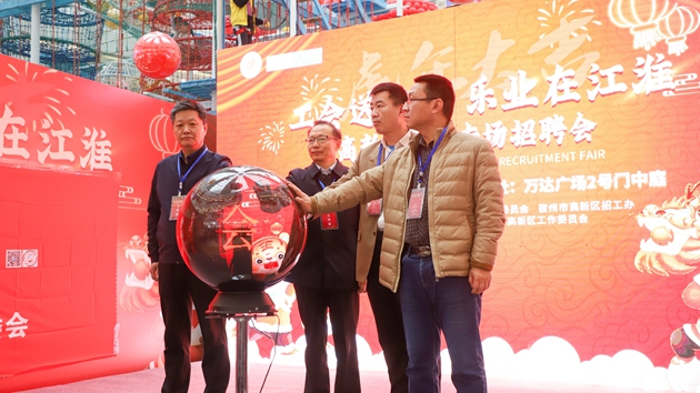 为贯彻落实全省改进工作作风为民办实事为企优环境大会精神,全面落实“六稳”“六保”工作任务,切实推动我市外出务工人员在本市就近就地就业,缓解“招工难”问题,2月13日下午,“工会送岗位 乐业在江淮”宿州市暨高新区工会就业援助招聘会在万达广场启动。市总工会党组书记、副主席高纯宇,市高新区党工委副书记、工会主任黄乔坤等出席启动仪式。