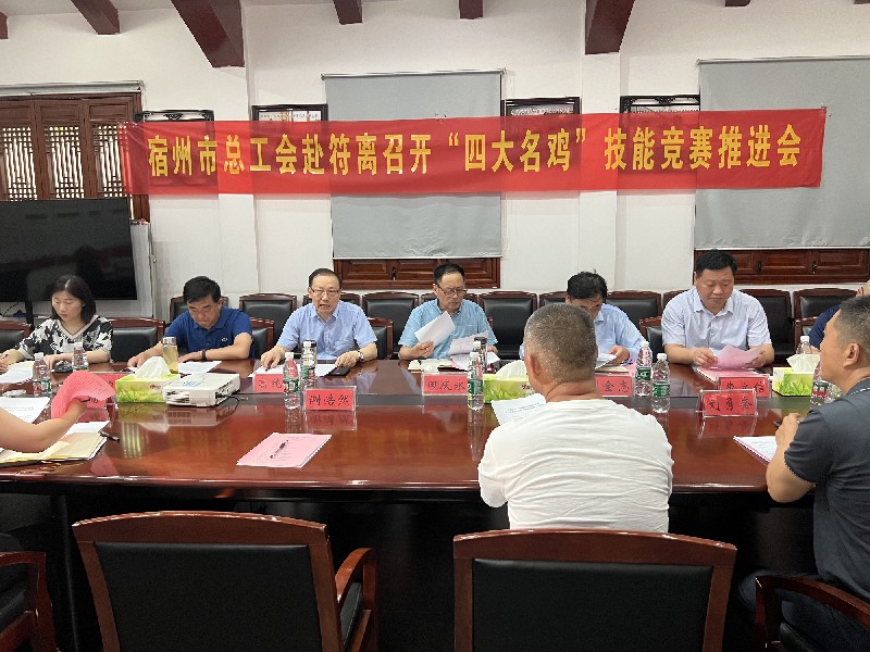 7月12日下午,市总工会党组书记高纯宇一行5人赴符离开展“四大名鸡”技能竞赛调研。区委副书记、符离镇党委书记王晶、区人大常委会党组成员、工会主席张炳俊等参加调研活动。