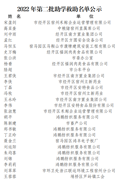 经9月28日市总党组会议研究决定,现对市直单位基层工会上报27名助学救助人员拟予以公示(附公示名单)。公示时间为5个工作日。任何单位和个人如对资助对象有异议,请在公示期间以书面形式或以电话方式向宿州市总工会反映。以单位名义反映情况的材料须加盖单位公章,以个人名义反映情况的材料须署名。