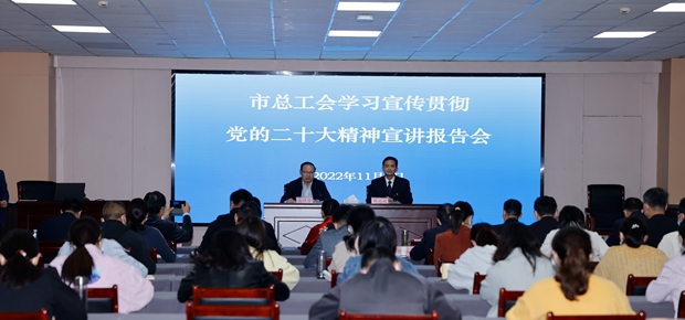 他强调,学习好、宣传好、贯彻好党的二十大精神将是当前和今后一个时期的首要政治任务。我们要把党的二十大精神落实到工作中,把思想和行动统一到贯彻落实党的二十大精神上,坚持用习近平新时代中国特色社会主义思想和党的二十大精神统领工会工作,把力量凝聚到党的二十大报告中对工会提出的新要求、新目标、新使命上来,齐心协力完成全年目标任务,高质量谋划明年的工作,奋力推动全市工会各项工作再上新台阶。(党总支)