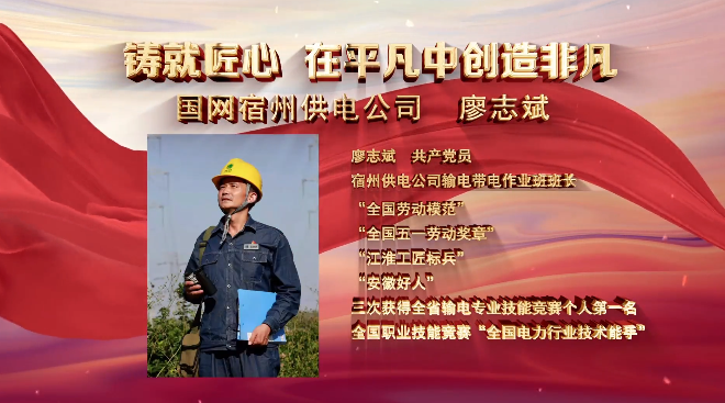 荣誉:“全国劳动模范”、“全国五一劳动奖章”、“江淮工匠标兵”、“安徽好人”、三次获得全省输电专业技能竞赛个人第一名、全国职业技能竞赛“全国电力行业技术能手”。