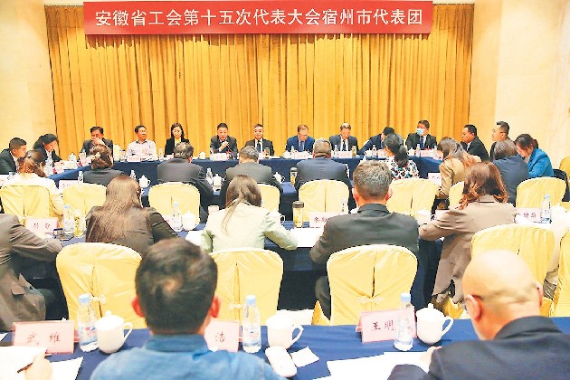 “大会报告政治站位‘高’、回顾总结‘全’、工作任务‘明’、指导思想‘清’、工作措施‘实’……”5月10日下午,宿州市代表团围绕省委、全总领导讲话和省工会十五大报告展开热烈讨论。