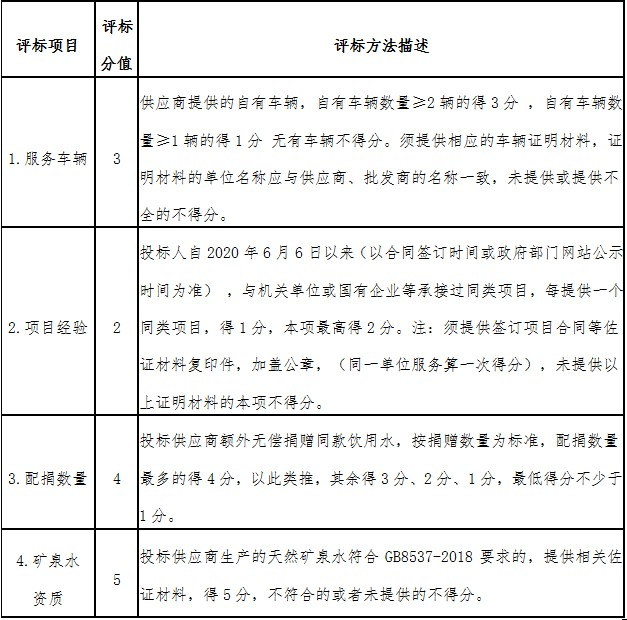2.水质要求:天然矿泉水符合GB38537-2018,其他饮用水符合GB19298-2014,合同履约期间,若国家颁布新的标准,按新标准规定要求执行。