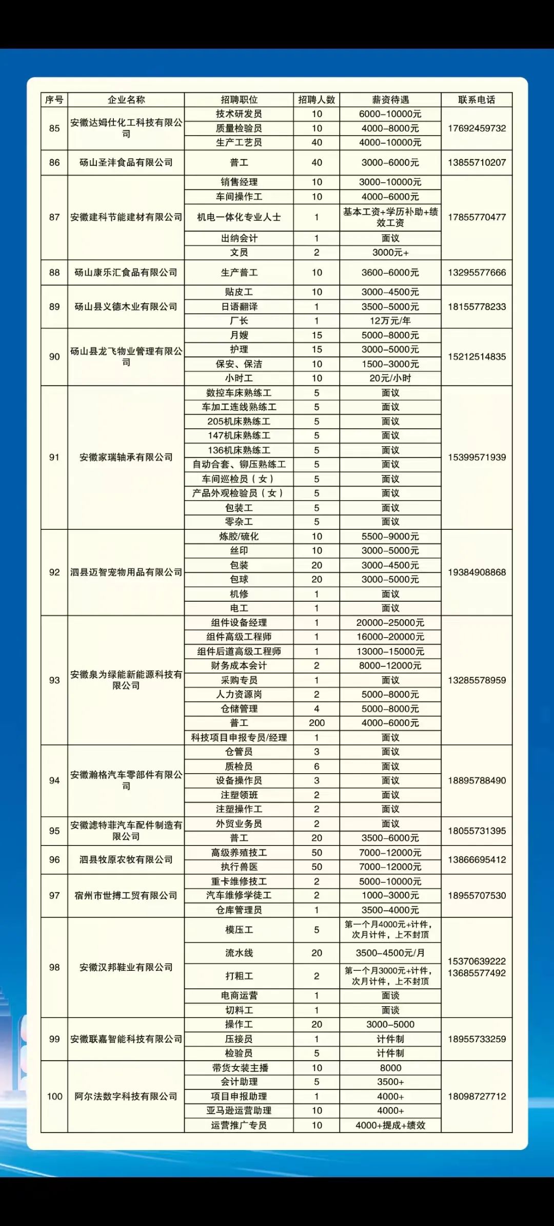 “工会送岗位 乐业在江淮”宿州招聘(七)