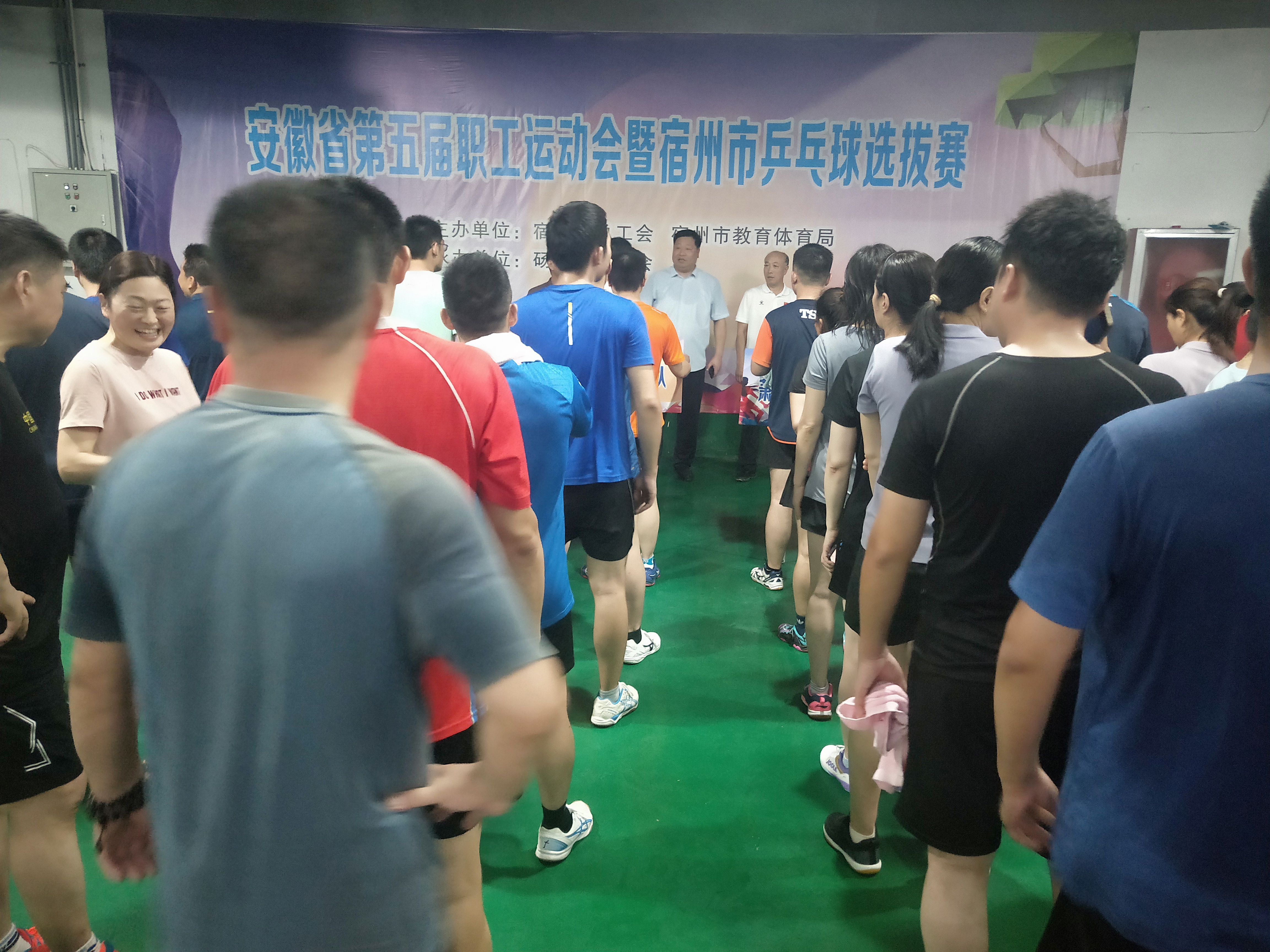 为深入贯彻落实安徽省总工会关于举办安徽省第五届职工运动会的有关工作部署,做好赛前选拔工作,8月8日下午,安徽省第五届职工运动会宿州市职工运动会乒乓球选拔赛,在砀山县鑫锐乒乓球俱乐部燃情开赛,来自市直、四县一区的6支代表队,50余名运动员参加比赛。