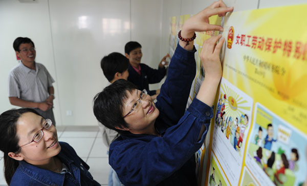 “我公司工会女职委迅速行动起来,通过印制手册、制作展板、悬挂标语、张贴宣传画等多种形式,将《女职工劳动保护特别规定》宣传工作推进班组、传达到每位女职工”。公司女职委副主任赵红向市总工会刘萌主席介绍宿州供电公司宣贯《特别规定》工作情况。近期,按照省总工会工作要求,宿州供电公司女职委迅速启动《女职工劳动保护特别规定》宣贯活动,通过展板、手册、标语、网站和举办“宣传咨询日”活动等多种媒体、多种形式开展宣传活动。