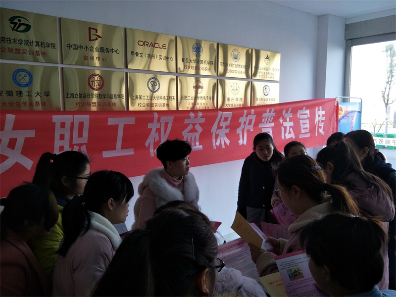 为迎接“三八”国际劳动妇女节,保障园区女职工权益,进一步激发园区女职工不断提升素质和干事创业的积极性,3月2日中午,宿州高新区工会利用职工午餐休息时间,在电商产业园举办女职工权益保护法律法规知识宣传活动。