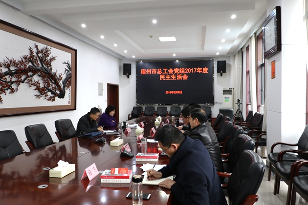 按照市委统一要求和部署,2月9日上午,宿州市总工会召开2017年度领导班子民主生活会。会议由市总工会党组书记、副主席连琦主持,市总工会全体党组成员参加了会议,市委派驻综合纪检组组长解林同志应邀出席了会议。